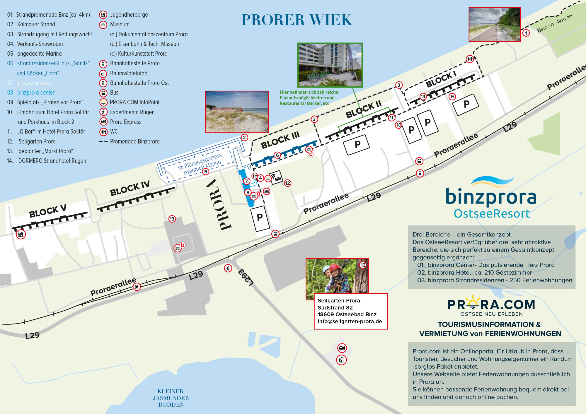Das innovative Onlineportal Prora.com für Urlauber und Eigentümer von Ferienwohnungen bietet erstklassigen Service und hat als Hauptziel die serviceorientierte Tourismus-Vermarktung von Prora. Unser Team hat seinen lokalen Standort direkt im Ort neben dem Verkaufs-Showroom (4) und steht Ihnen für Fragen rund um Buchungen einer Prora FeWo, Vermietung und Vermarktung von Ferienwohnungen täglich zur Verfügung.